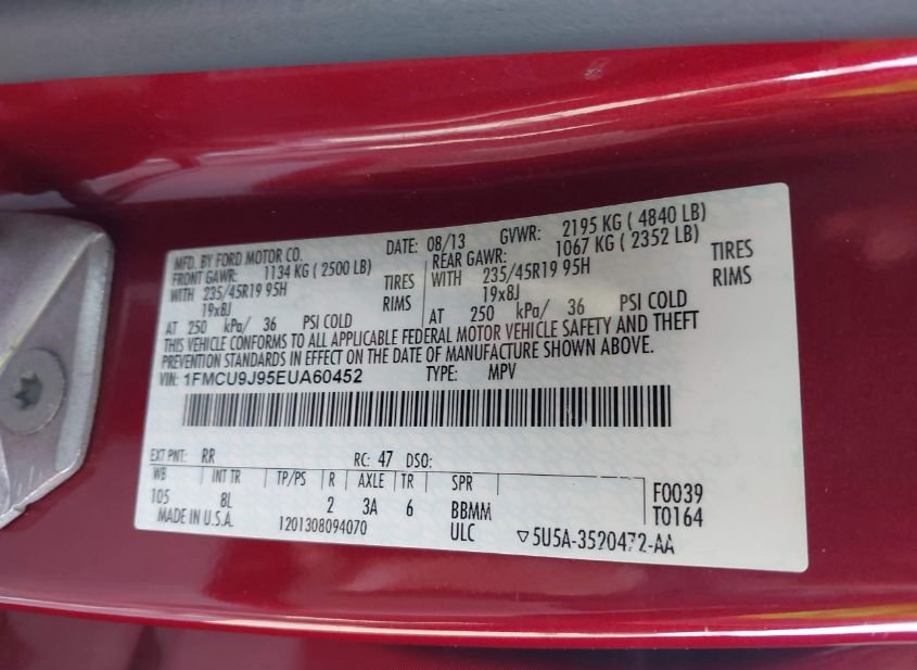 - VIN: 1FMCU9J95EUA60452