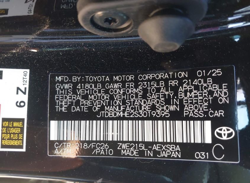 - VIN: JTDBDMHE2S3019395