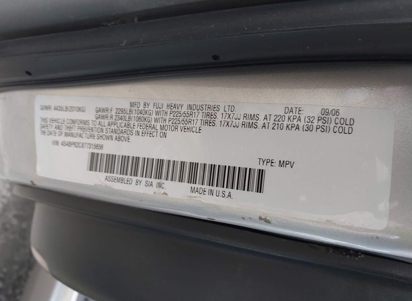 - Название лота: 2007 Subaru Outback 2.5L
