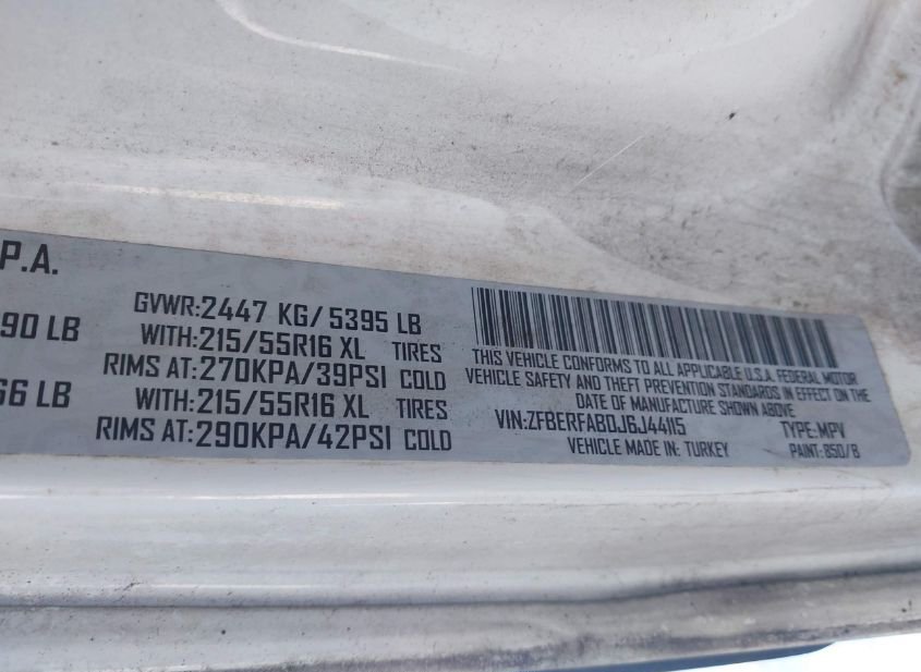 - VIN: ZFBERFAB0J6J44115