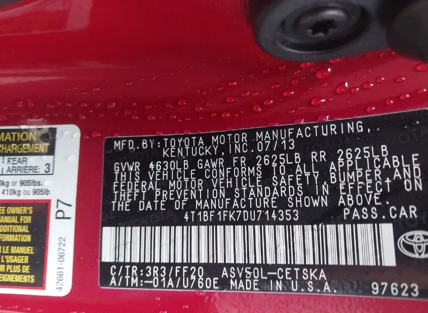 - VIN: 4T1BF1FK7DU714353