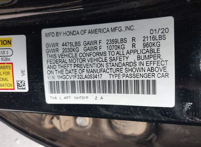 - VIN: 1HGCV1F32LA053417