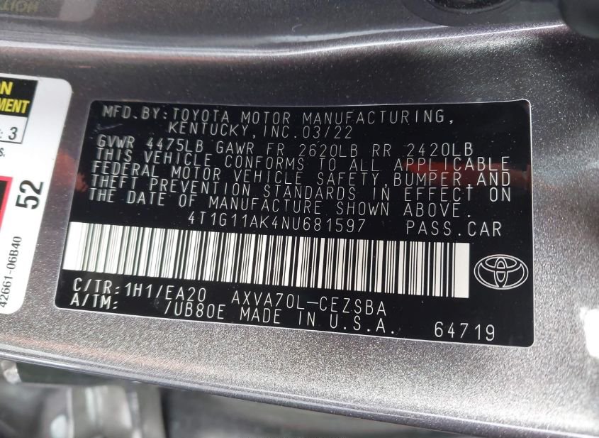 - VIN: 4T1G11AK4NU681597