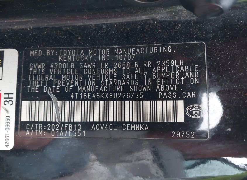 2008 TOYOTA CAMRY