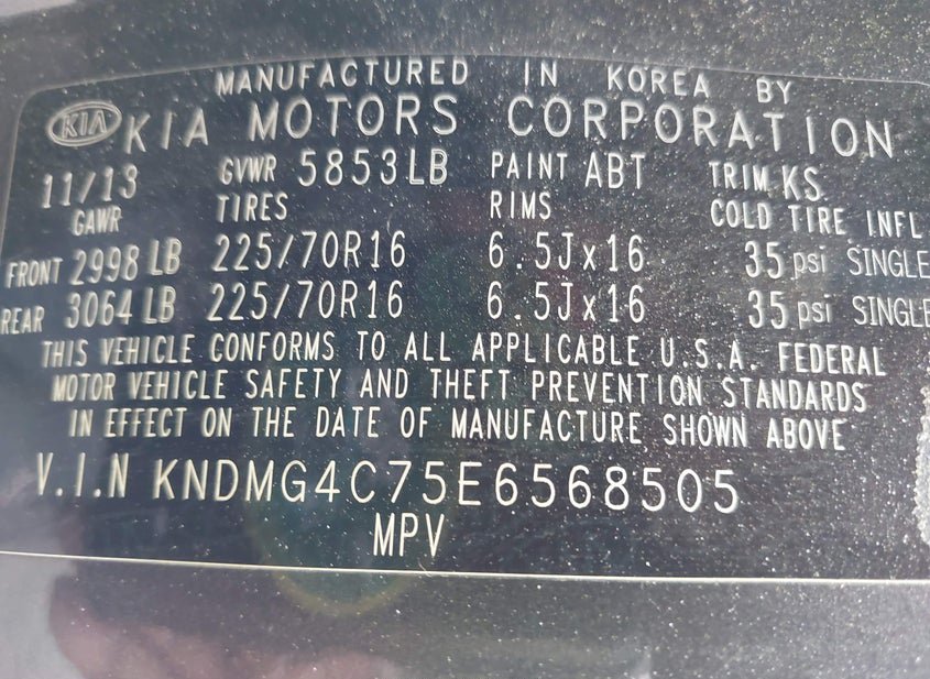 - VIN: KNDMG4C75E6568505