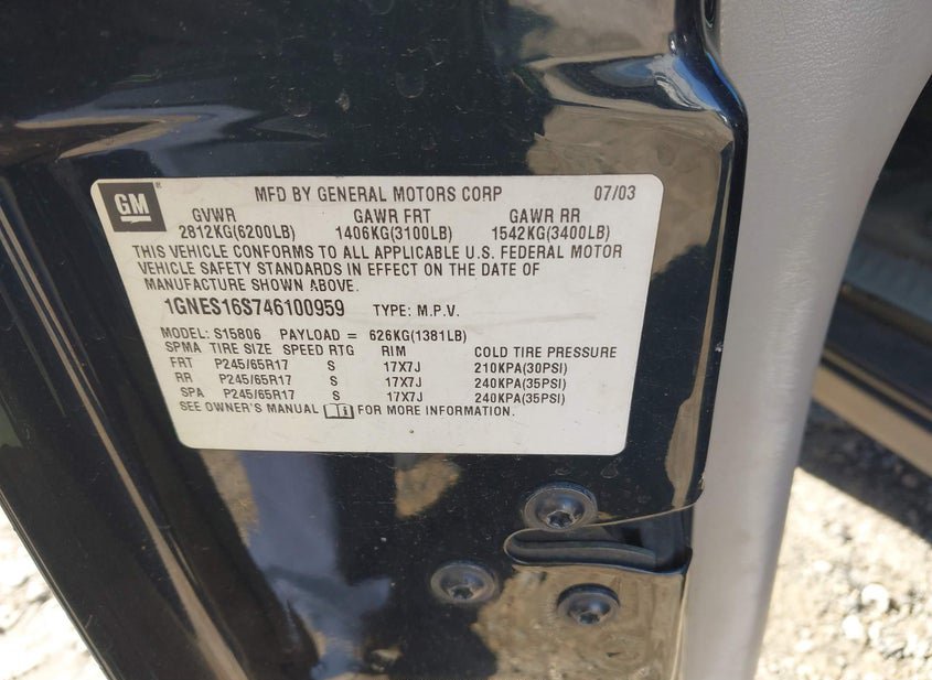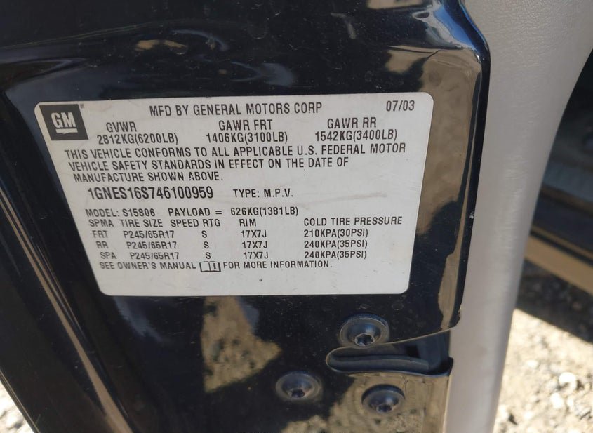 - VIN: 1GNES16S746100959