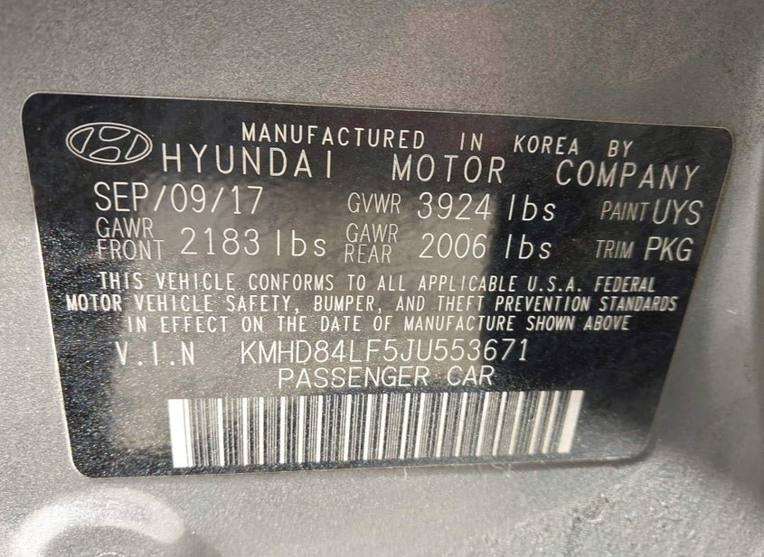 - VIN: KMHD84LF5JU553671