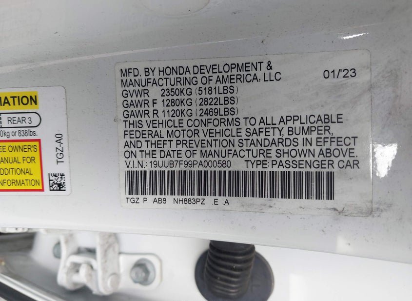 - VIN: 19UUB7F99PA000580