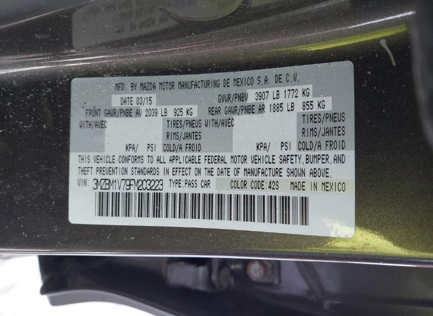 - VIN: 3MZBM1V79FM203223