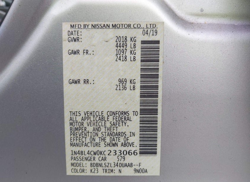 - VIN: 1N4BL4CW0KC233066