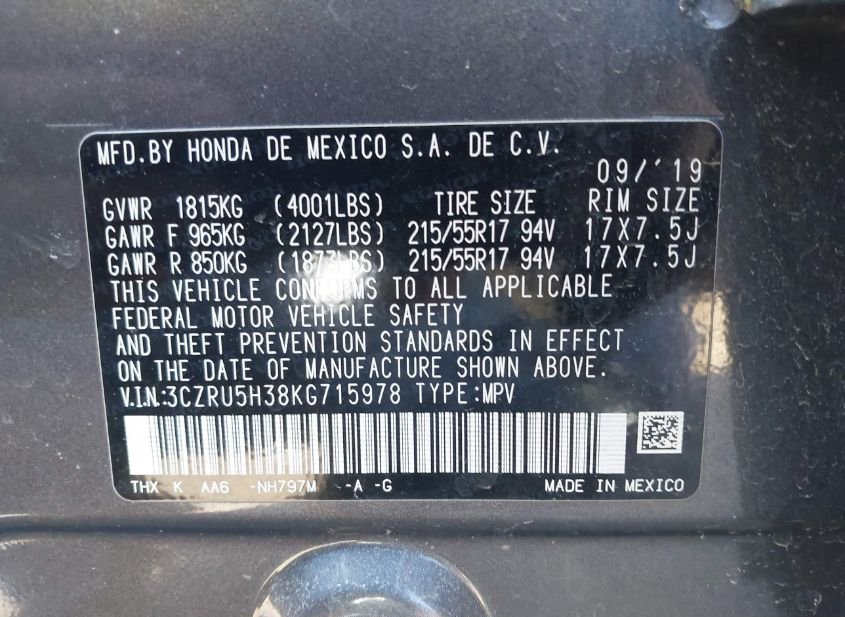 - VIN: 3CZRU5H38KG715978