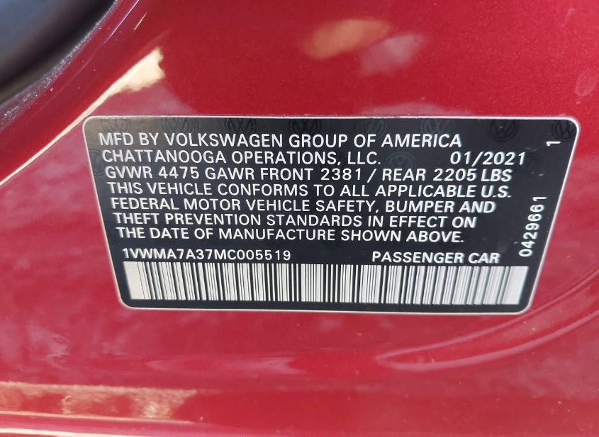 - VIN: 1VWMA7A37MC005519