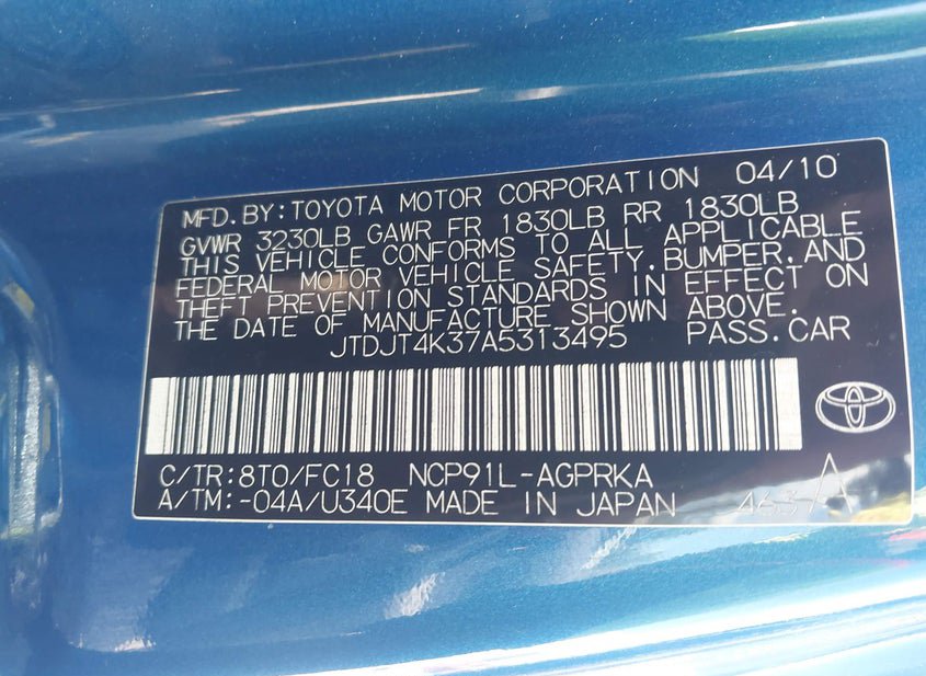- VIN: JTDJT4K37A5313495