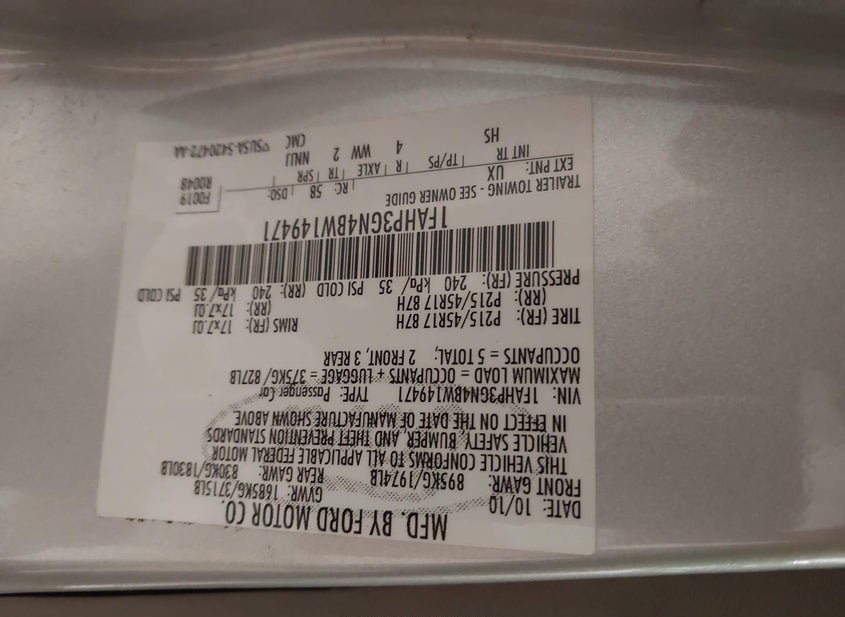 - VIN: 1FAHP3GN4BW149471