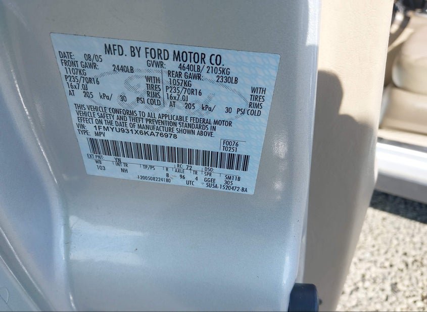 - VIN: 1FMYU931X6KA76978
