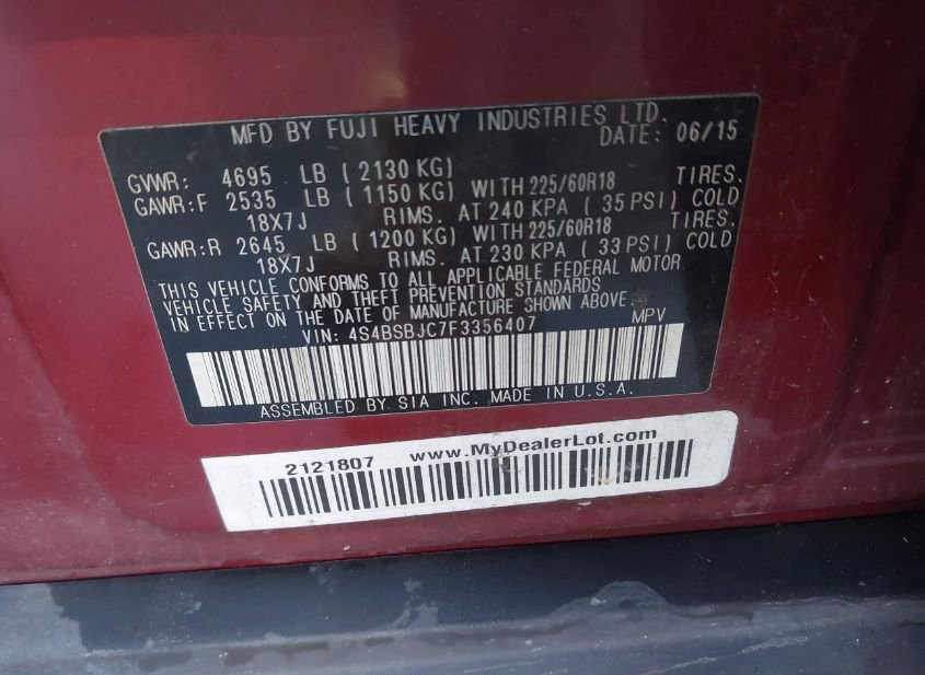 - Название лота: 2015 SUBARU OUTBACK 2.5I LIMITED