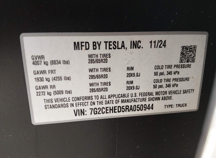 - Название лота: 2024 TESLA CYBERTRUCK