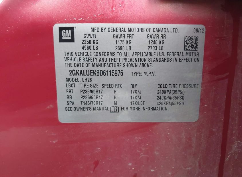 - VIN: 2GKALUEK8D6115976