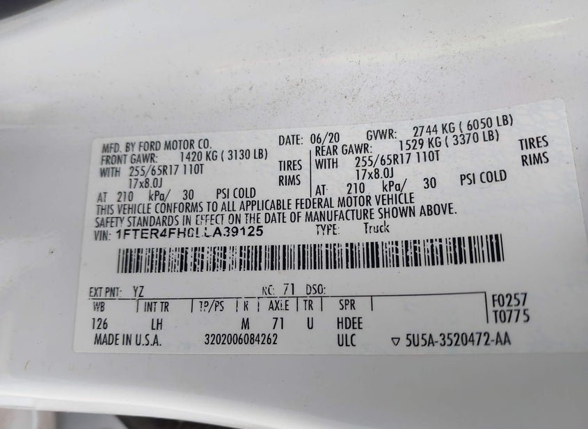 - VIN: 1FTER4FH0LLA39125