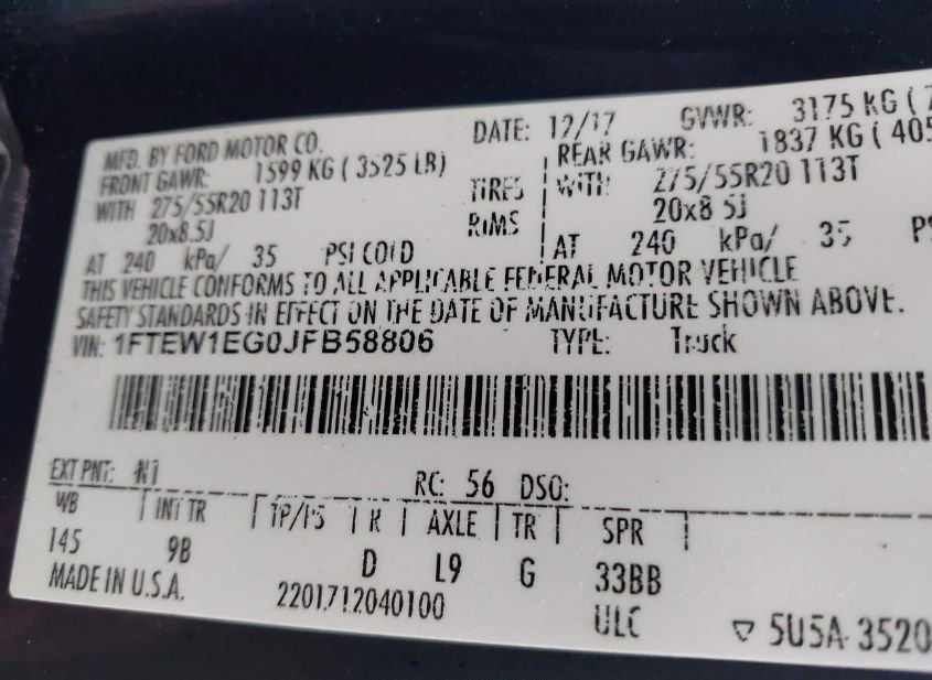 - VIN: 1FTEW1EG0JFB58806