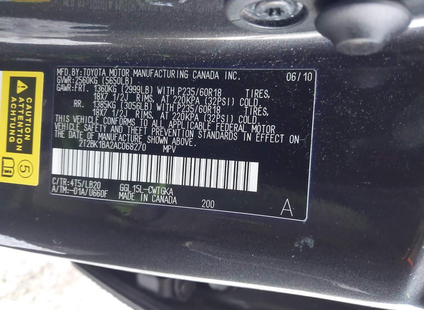 - VIN: 2T2BK1BA2AC068270