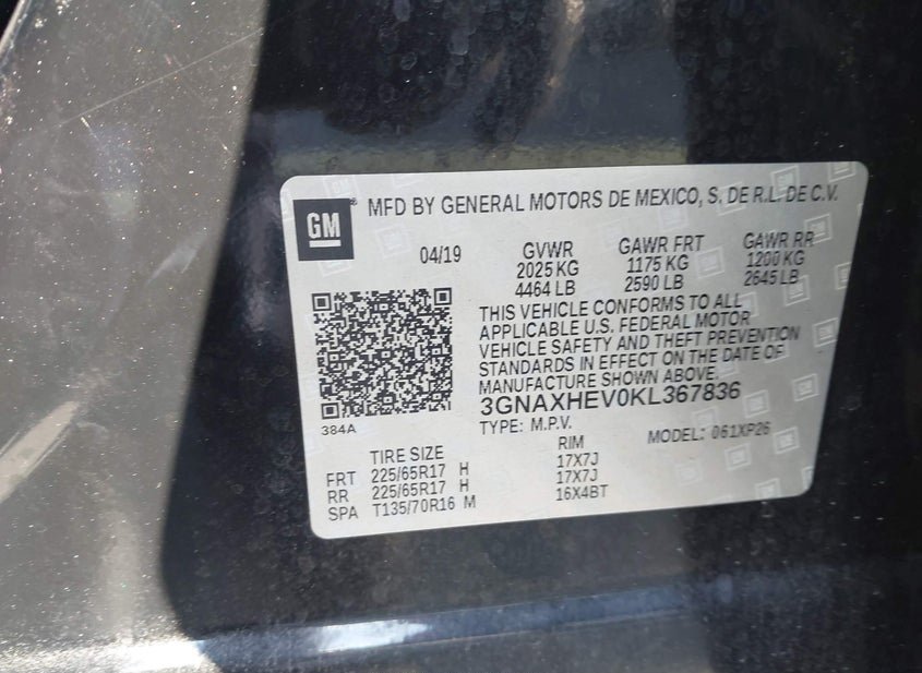 - VIN: 3GNAXHEV0KL367836