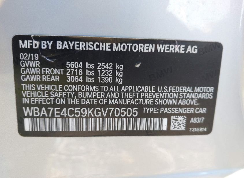 - VIN: WBA7E4C59KGV70505