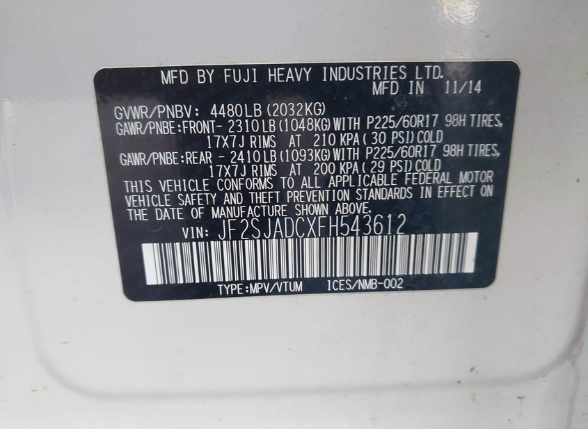 - VIN: JF2SJADCXFH543612