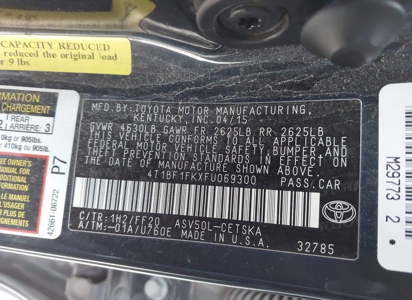 - VIN: 4T1BF1FKXFU069300