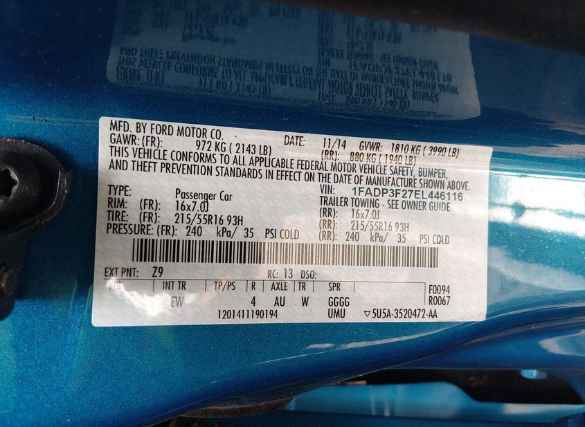 - VIN: 1FADP3F27EL446116