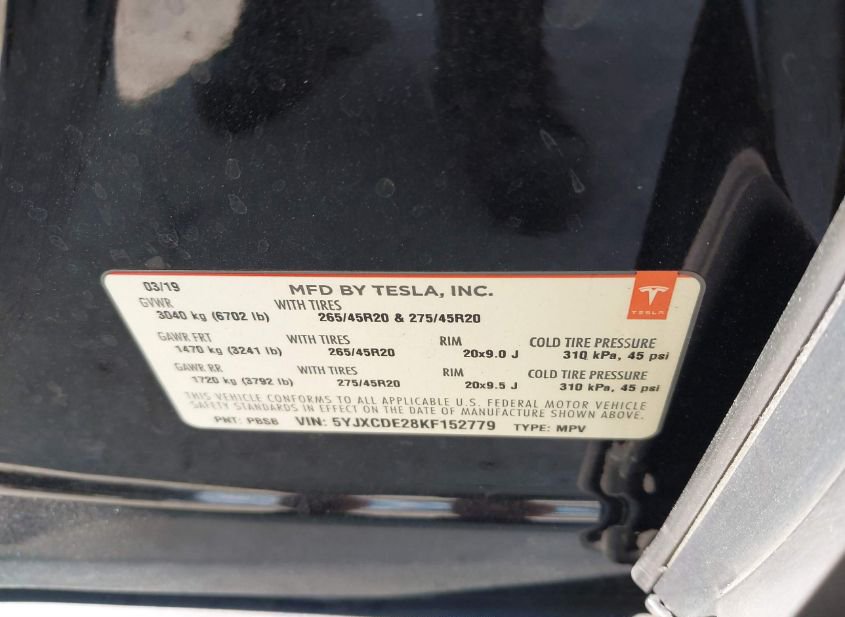 - VIN: 5YJXCDE28KF152779