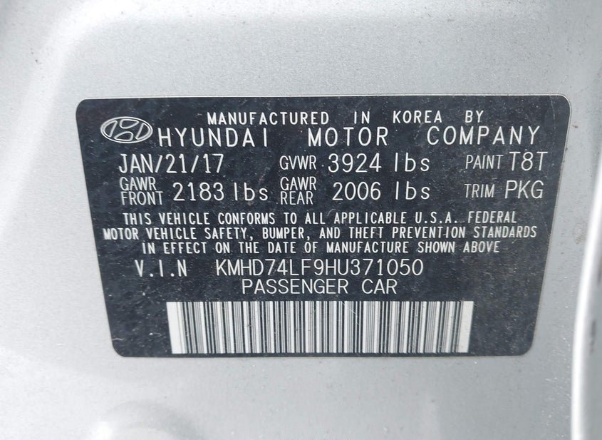 - VIN: KMHD74LF9HU371050