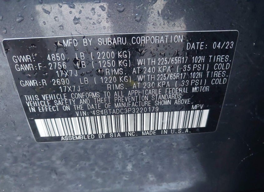 - VIN: 4S4BTADC3P3220179