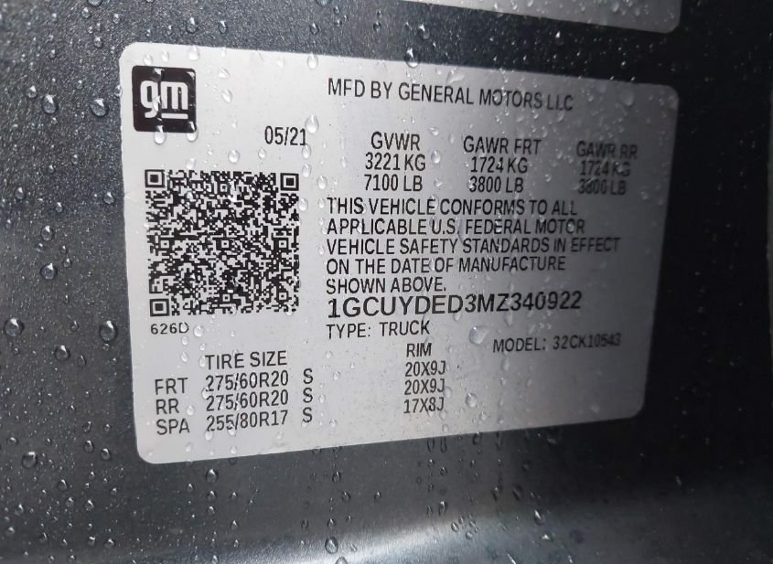 - VIN: 1GCUYDED3MZ340922