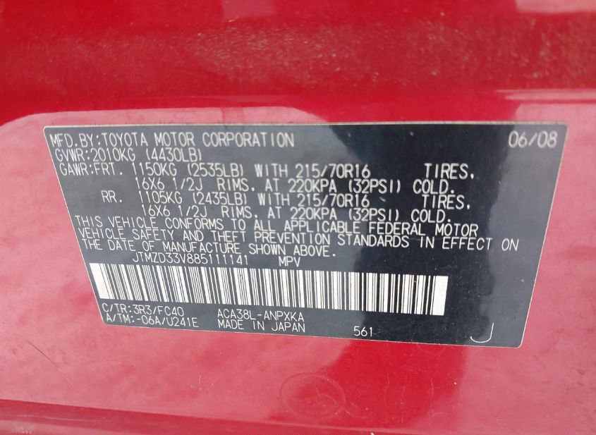- VIN: JTMZD33V885111141