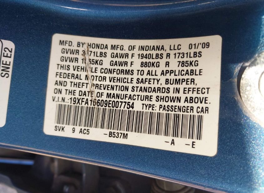 - VIN: 19XFA16609E007754