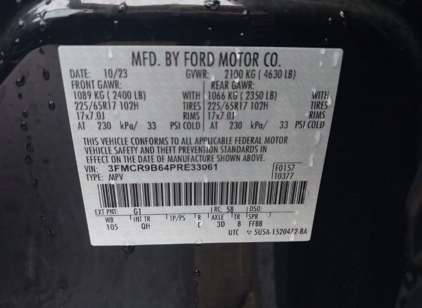 - VIN: 3FMCR9B64PRE33061