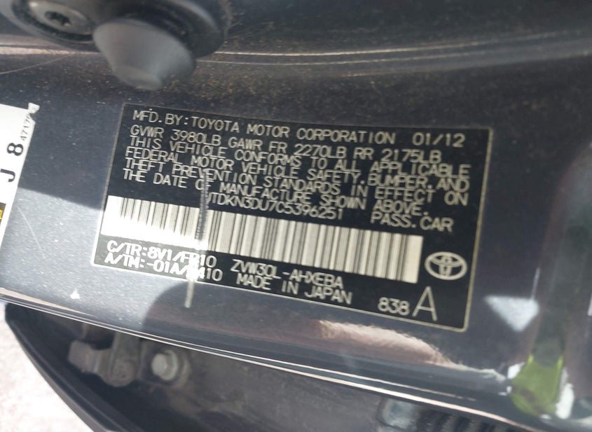 - VIN: JTDKN3DU7C5396251