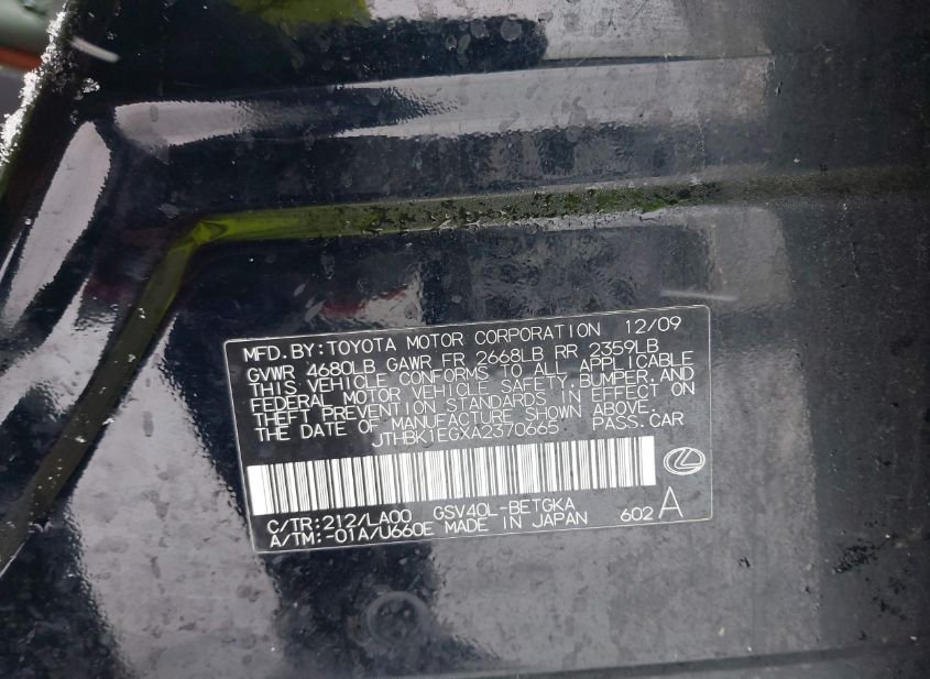 - Название лота: 2010 LEXUS ES 350
