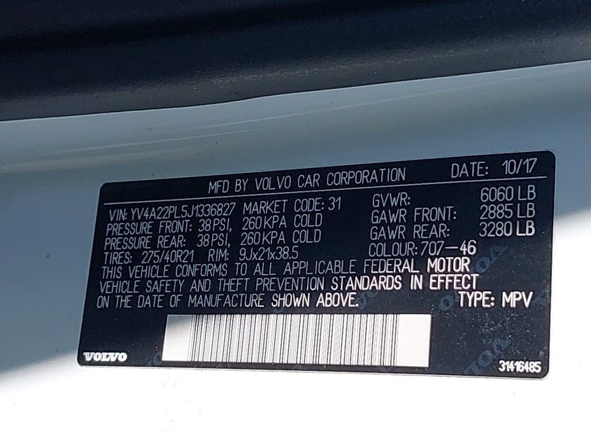 - VIN: YV4A22PL5J1336827