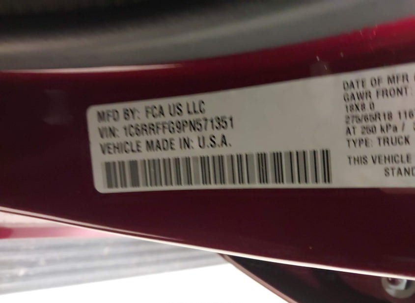 - VIN: 1C6RRFFG9PN571351