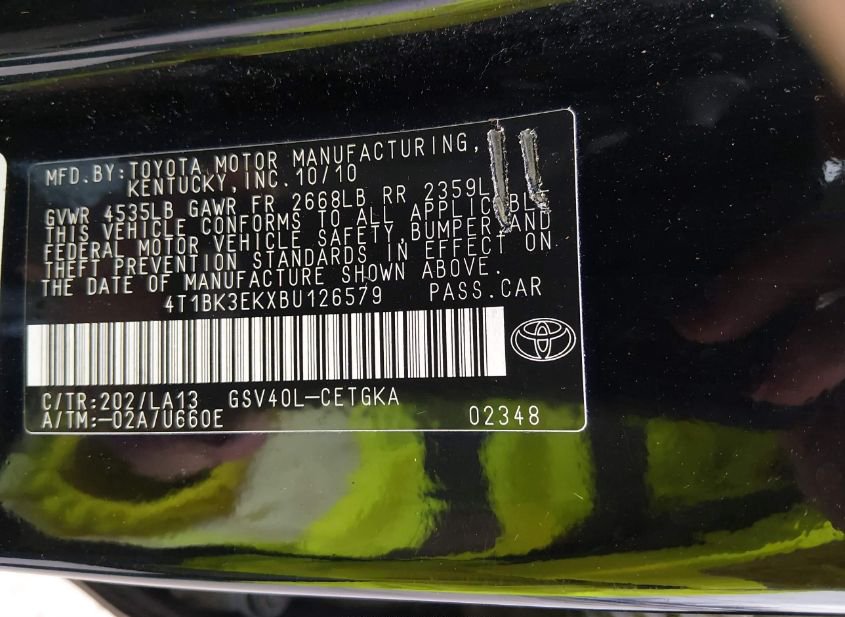 - VIN: 4T1BK3EKXBU126579