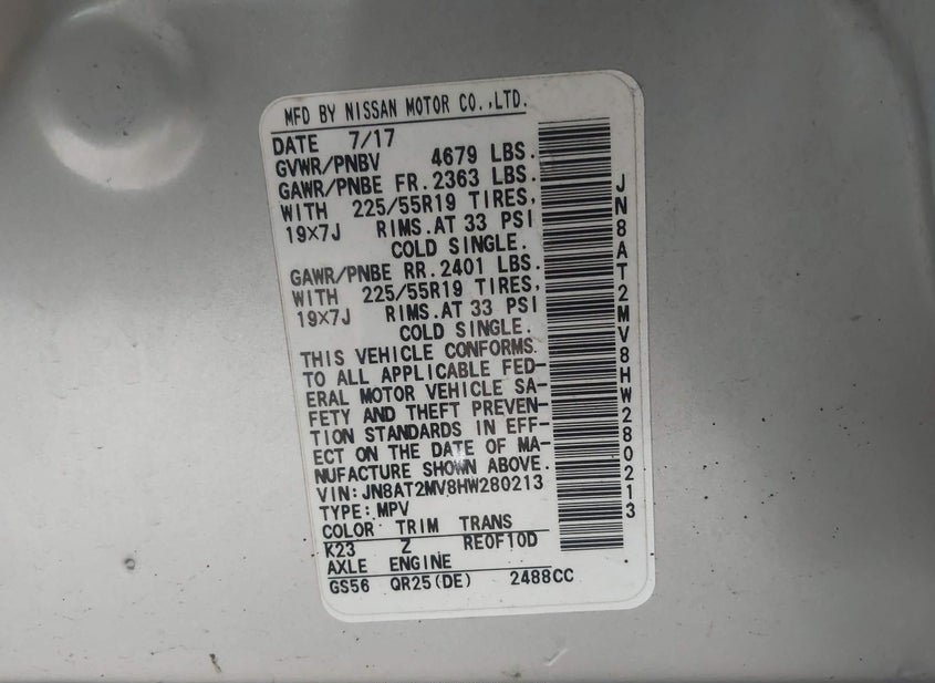 - VIN: JN8AT2MV8HW280213