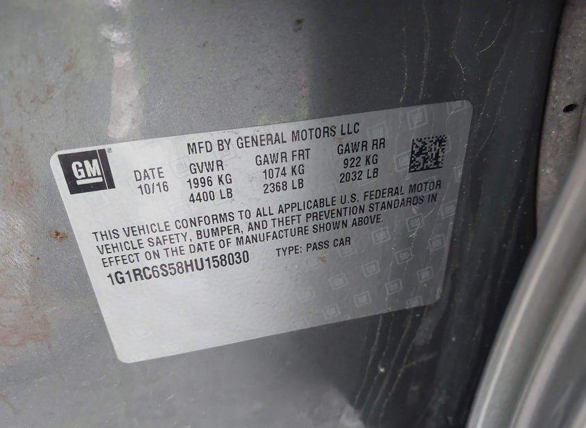 - VIN: 1G1RC6S58HU158030