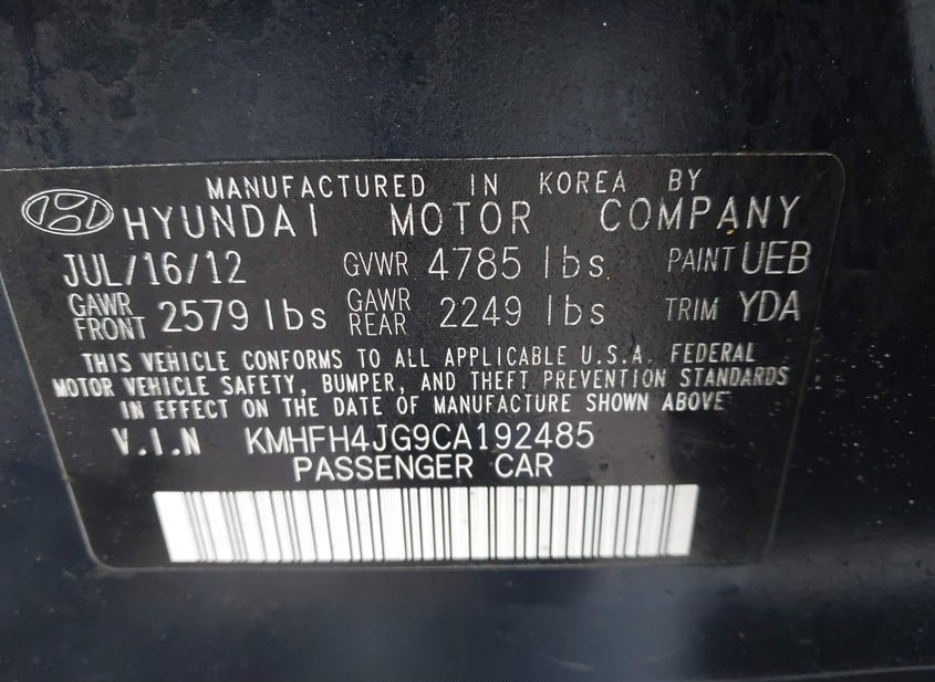 - VIN: KMHFH4JG9CA192485