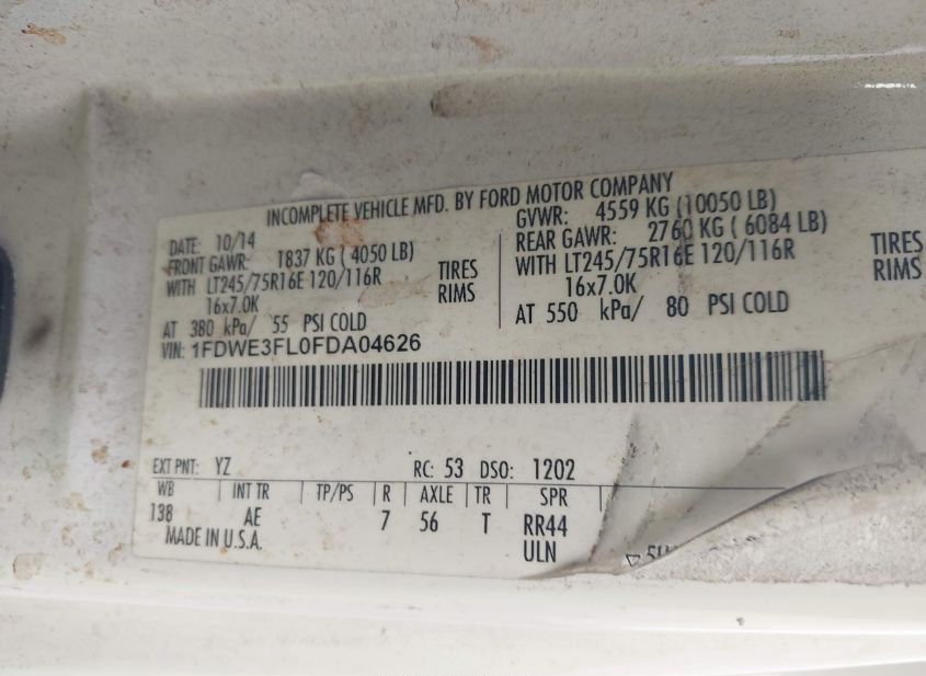 - VIN: 1FDWE3FL0FDA04626