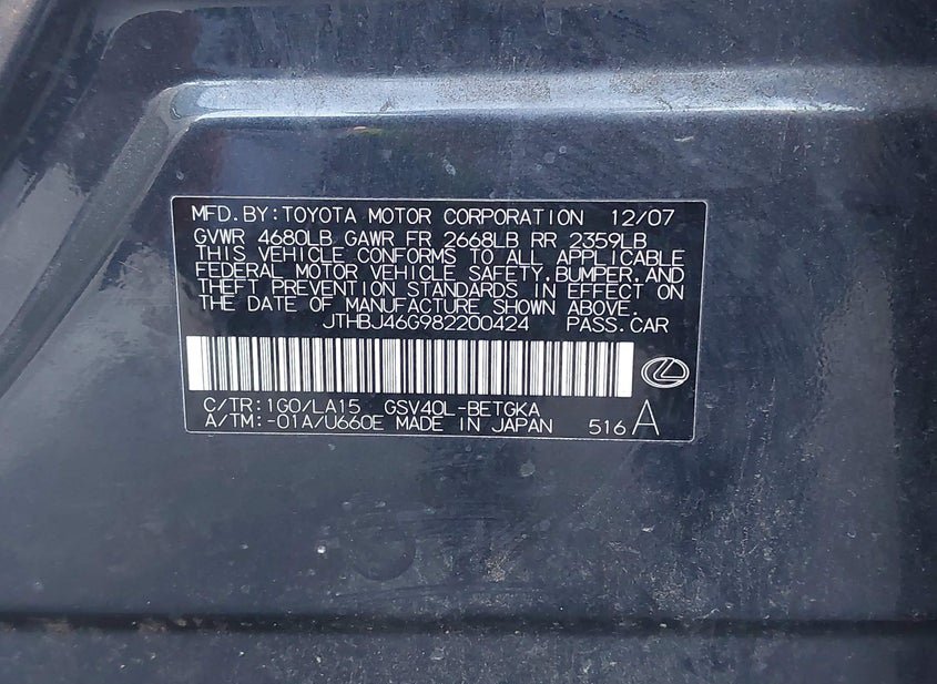 - VIN: JTHBJ46G982200424