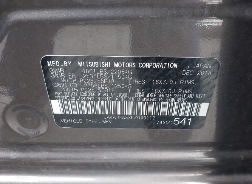 - Название лота: 2019 MITSUBISHI OUTLANDER LE