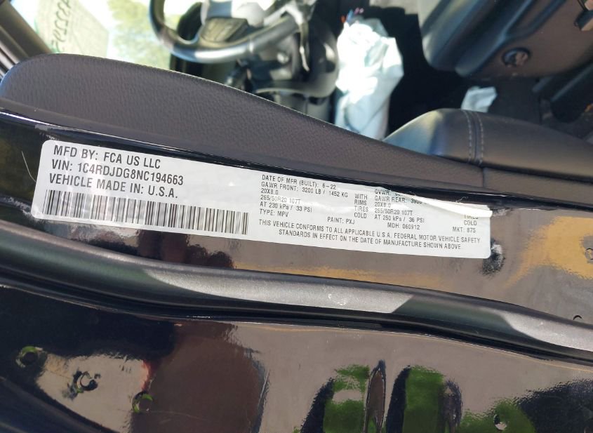 - VIN: 1C4RDJDG8NC194663