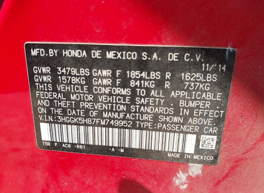 - VIN: 3HGGK5H87FM749952